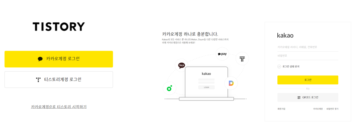 2. 카카오계정 또는 티스토리계정으로 로그인