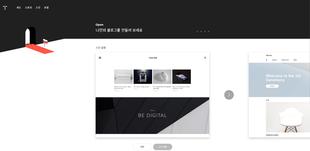 스킨을 고르셨다면 티스토리 회원가입이 완료됩니다.