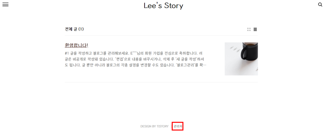 #1에서 티스토리 회원가입을 마치셨다면 다음 관심사는 글쓰기도 있겠지만 블로그 관리가 아닐까 생각합니다.