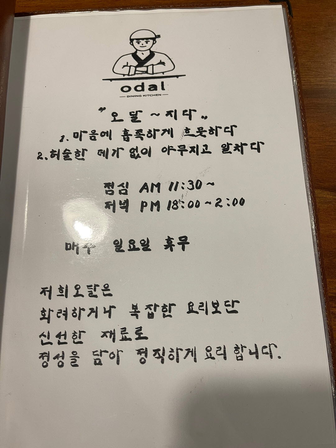 노원역 근처에서 저녁을 먹다가 건너편에 우연히 오달이라는 간판을 보게 되었다. 그리고 일주일 뒤 테라스 쪽 자리로 예약을 하고 방문했다.
