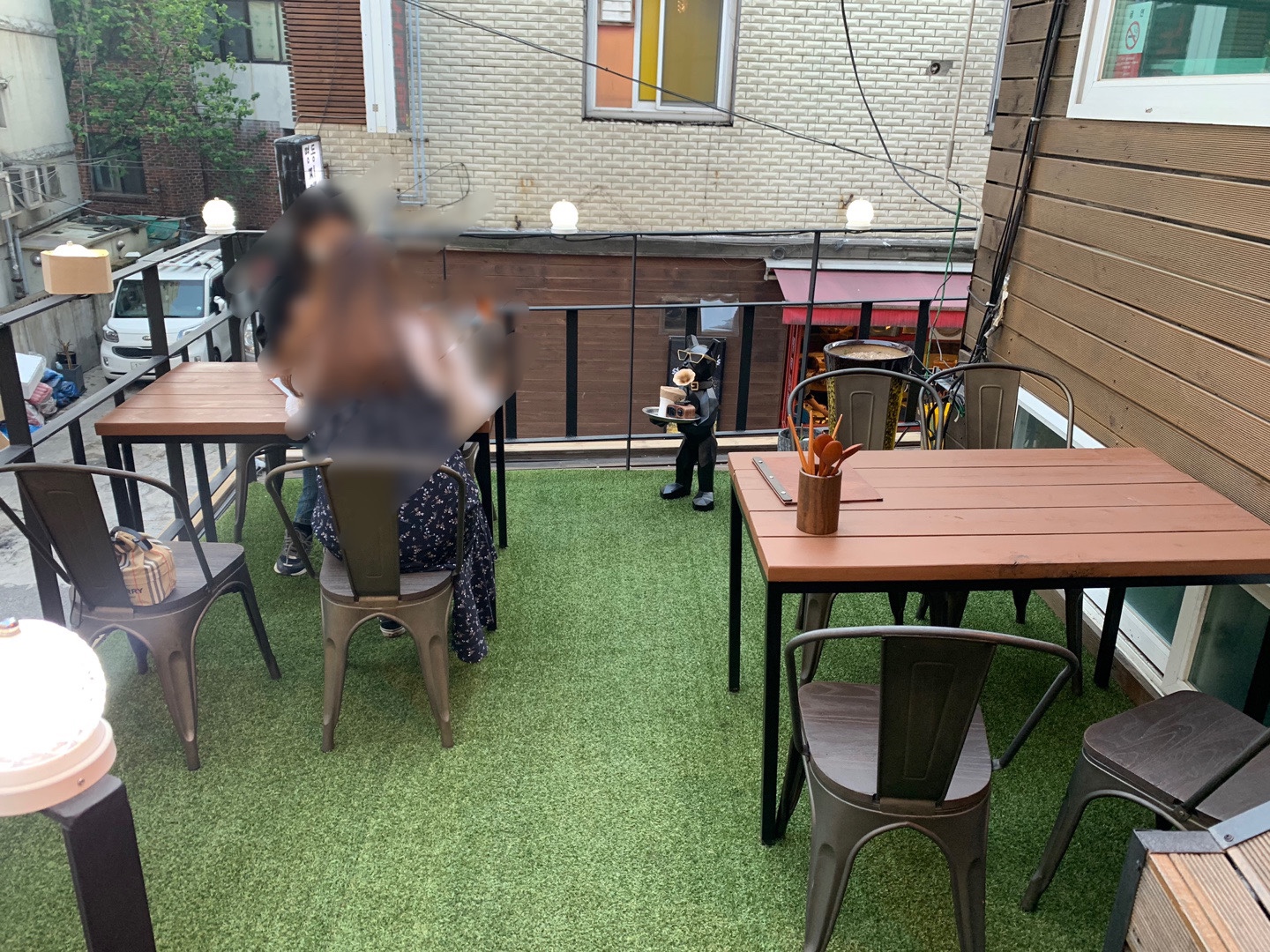 그런데 방문한 날 미세먼지가 그냥 눈에 보일 정도였고, 비도 오려고 해서 결국 테라스에는 못 앉았고, 내부 문 앞자리에 앉았다ㅠㅠ 테라스에는 두 팀 정도 앉을 수 있는 공간이 있고, 나름 분위기도 괜찮아 보였다. (다음에는 테라스에...)
